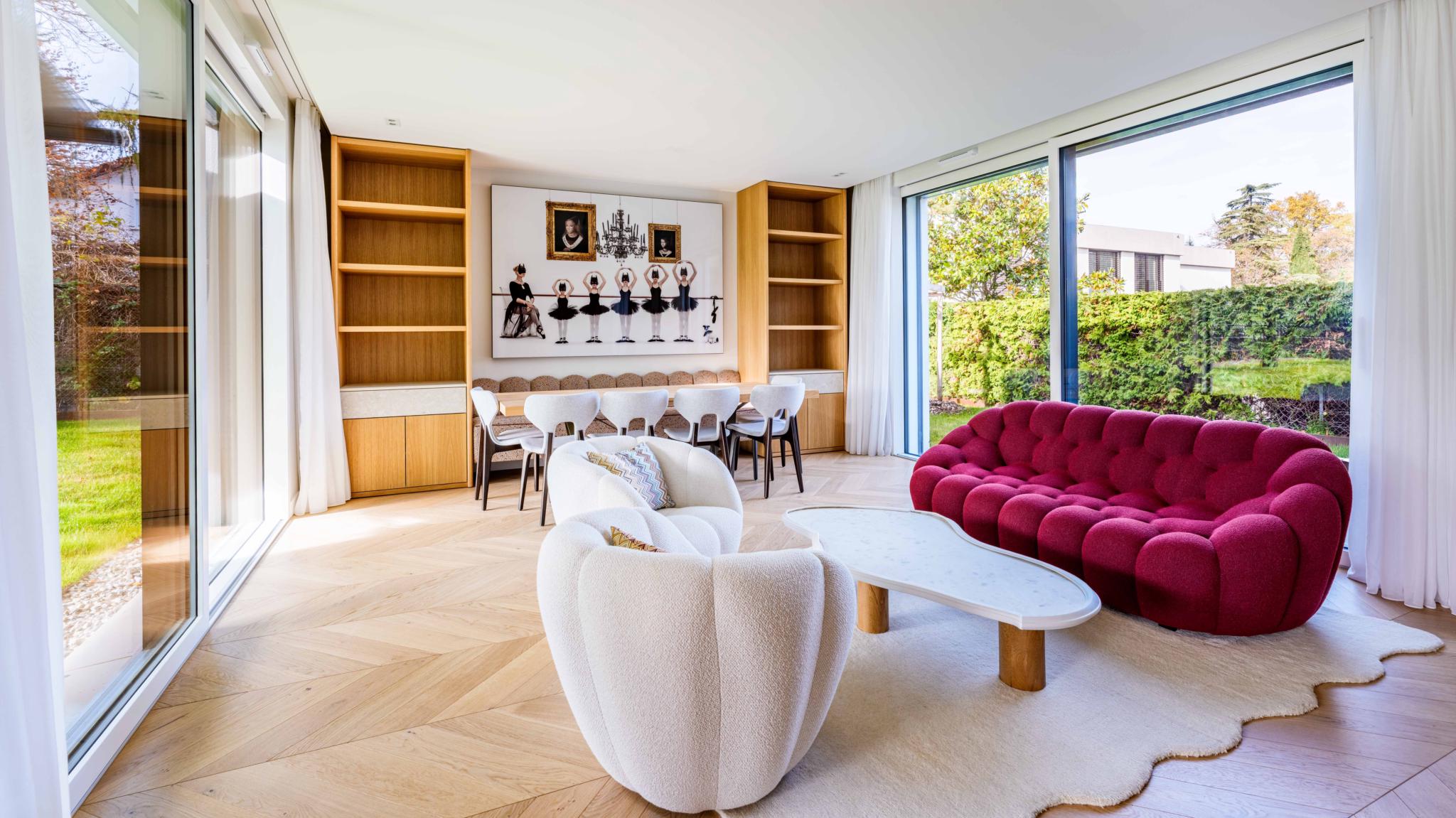 - Magnifique pièce de vie lumineuse ouverte sur le jardin, avec de larges baies vitrées